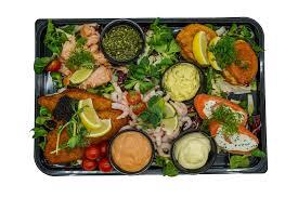 Fiskeplatte til 2 personer til 2 personer fra vores Delikatesse med 4 forskellige varianter; f.eks. fiskefrikadeller, varmrøget laks