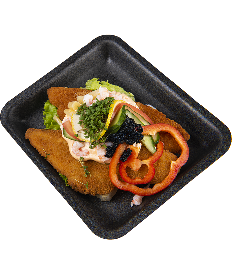 2 rødspættefilet , rejer , asparges mv. på friskbagt brød fra egen håndværksbager